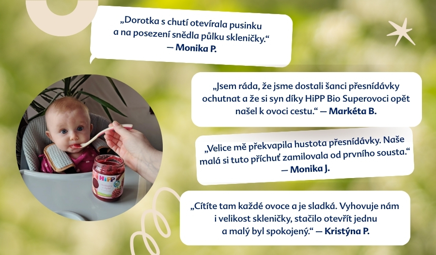 Ovocné příkrmy jsou nedílnou součástí jídelníčku každého miminka i batolete. Tentokrát měly maminky z naší komunity možnost otestovat řadu HiPP BIO SUPEROVOCE, která slibuje nejen vysokou BIO kvalitu, ale především intenzivní chuť skutečného ovoce bez přidaného cukru.